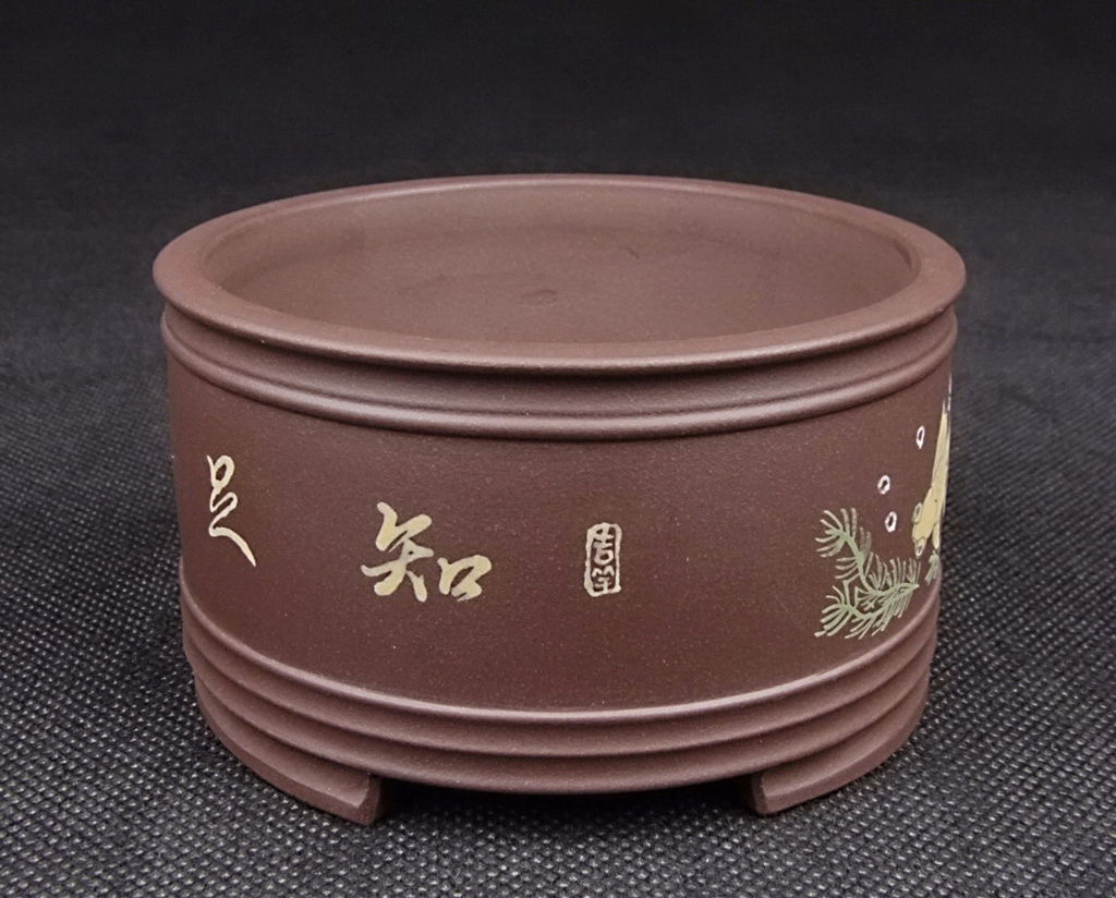 進口紫砂盆- 9月採購 名家( 沈小君)圓竹節点彩盆