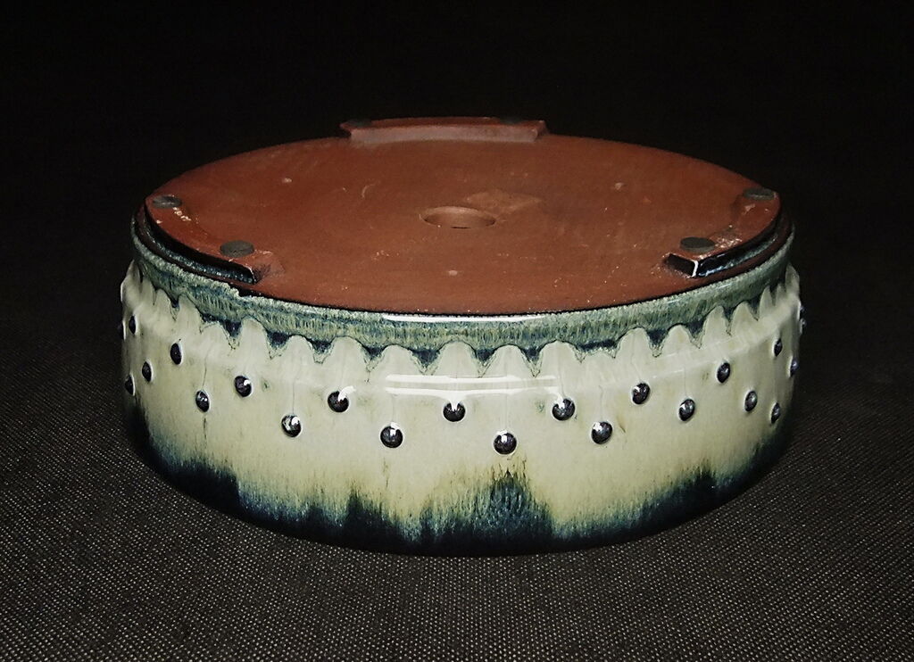 【盆缽收藏】 精品灰綠流釉 圓形鼓丁盆 11 01