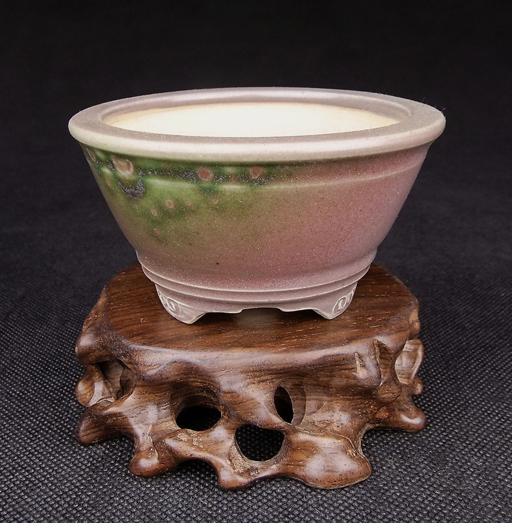 【盆缽收藏】 松年 紫紅雙掛釉圓盆