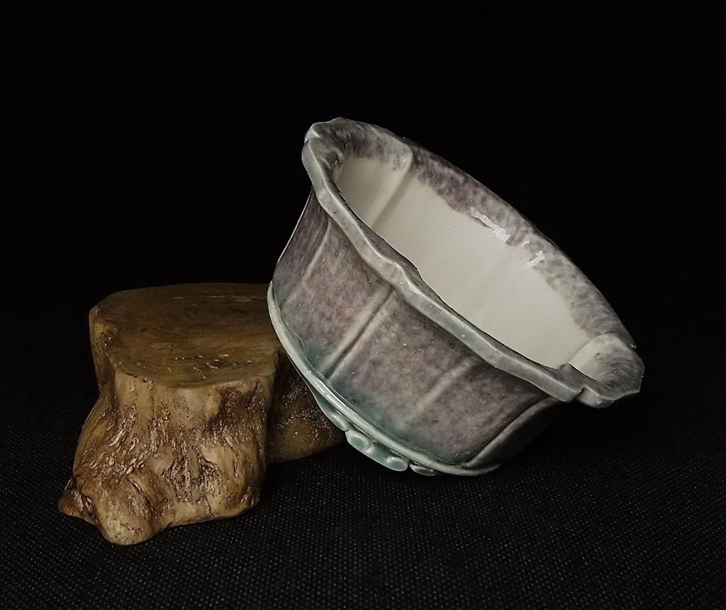 【盆缽收藏】順成 - 絳紫釉雲足輪花盆