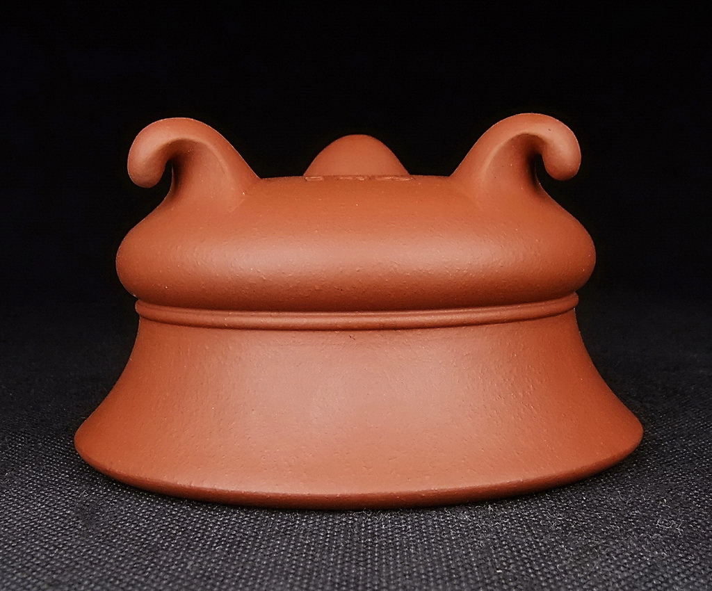【盆缽收藏】 展覽級 名家純梨皮朱泥 卷腳三足圓盆