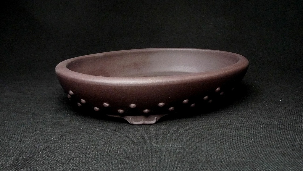 【進口紫砂盆】紫泥/红清水泥 - 山字足直口鼓釘橢圓盆12 06