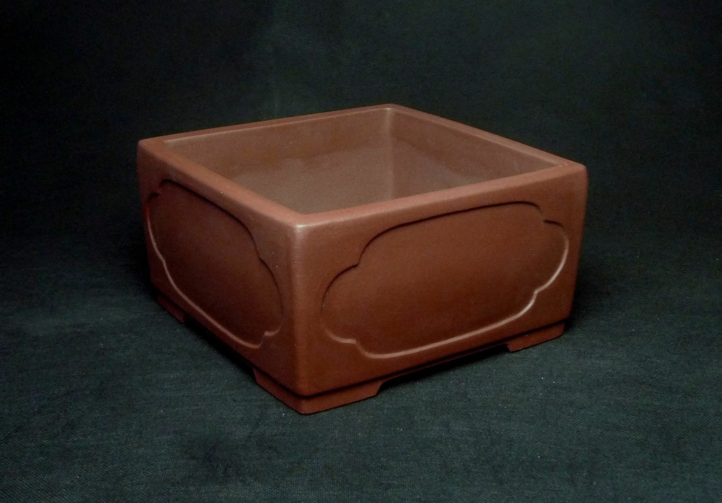 【盆缽收藏】 紫泥 -中品-直口诲棠奎面正方盆10 10