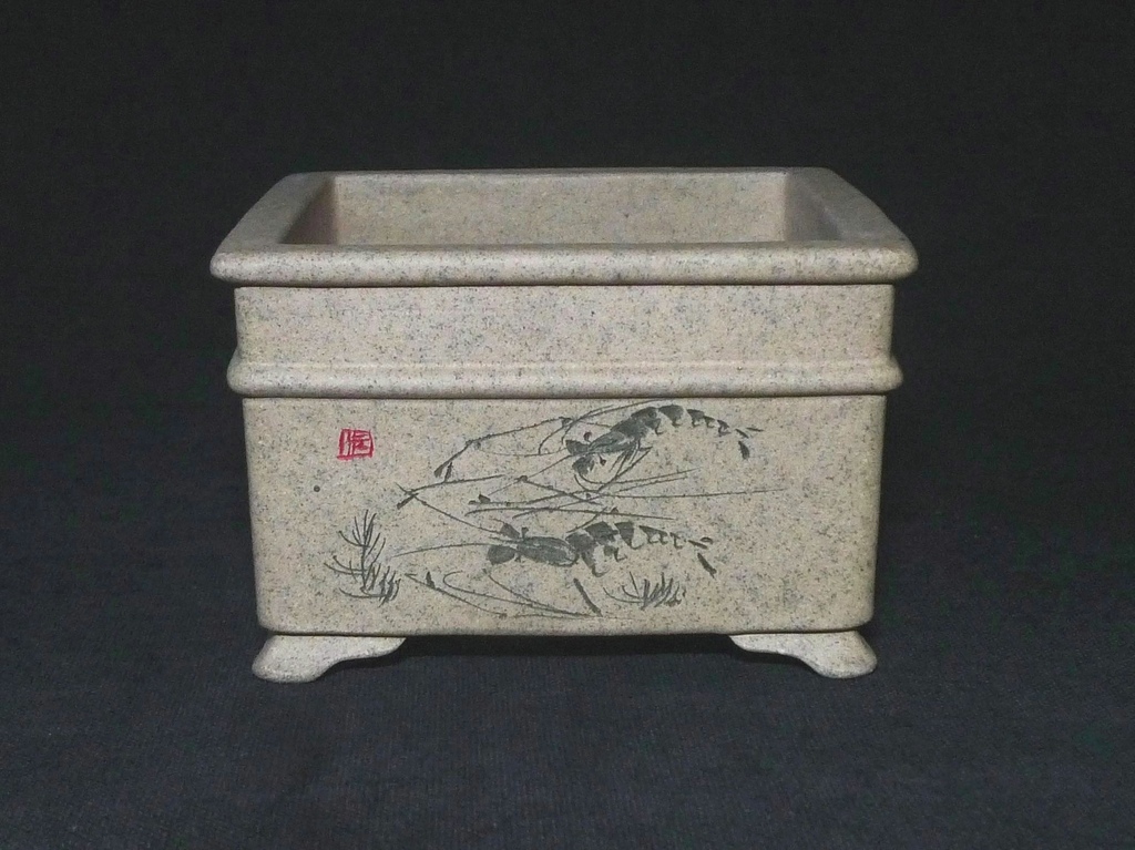 【盆缽收藏】優選名家 -芝麻段泥-外緣中代四面刻方盆 01 10