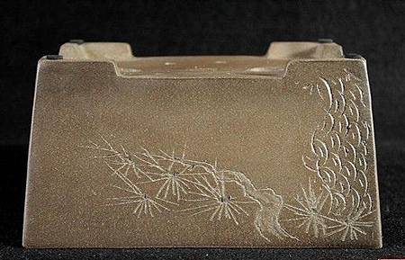 宜興 青灰泥 20 x 15 高 10.5 CM 落款:林溪堂造