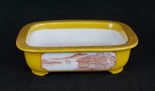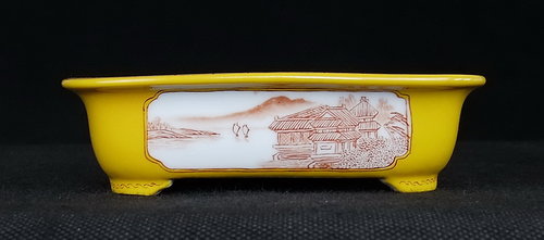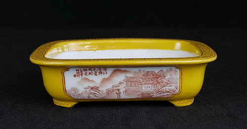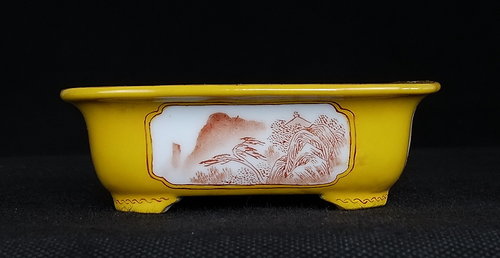 * 興榮藝 皇帝黃開窗 赤繪山水繪盆 興榮藝 山水繪盆 吸引人的是其繪圖