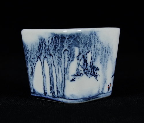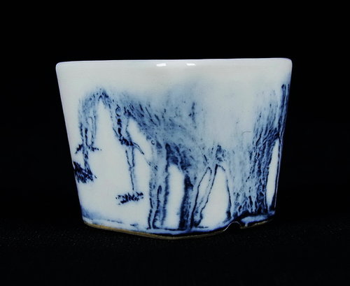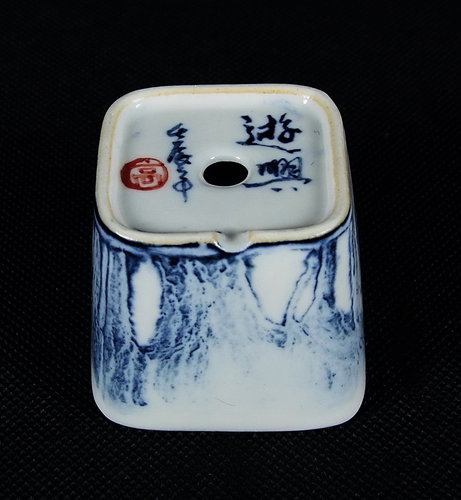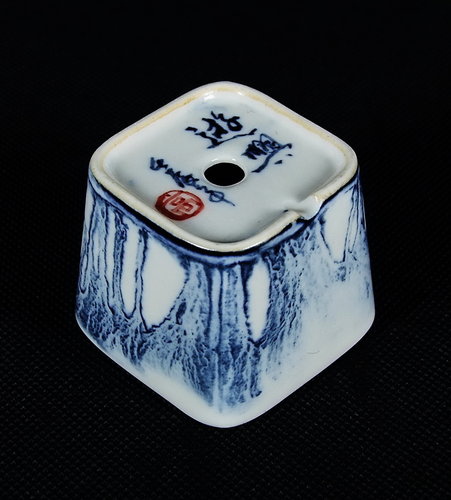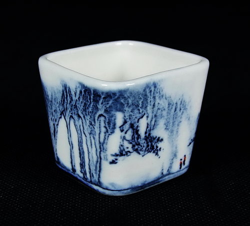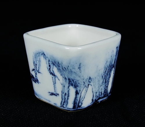 * 潑墨青花山水景四方盆 第2批 不同於一般青花瓷山水繪畫