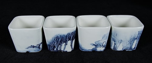 潑墨青花山水景四方盆‧才回來8件 馬上被愛好藏家收了一半去*