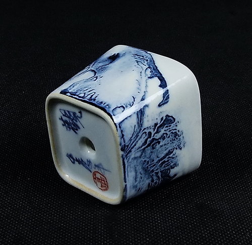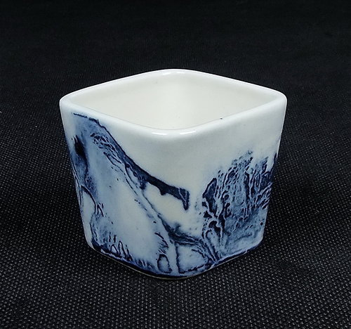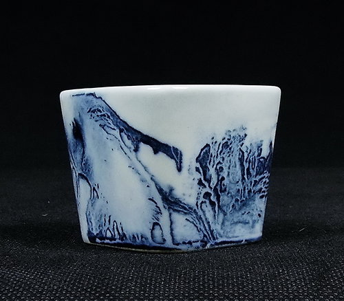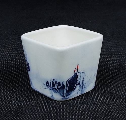 * 潑墨青花山水景四方盆 不同於一般青花山水繪畫 欣賞這位泰雅族的高老師