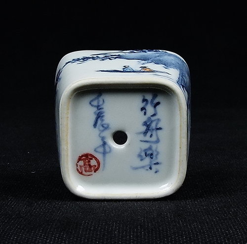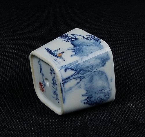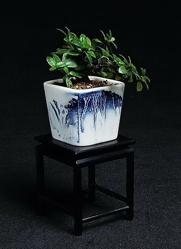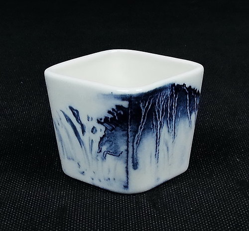 * 潑墨青花山水景四方盆 不同於一般青花山水繪畫 欣賞這位泰雅族的高老師