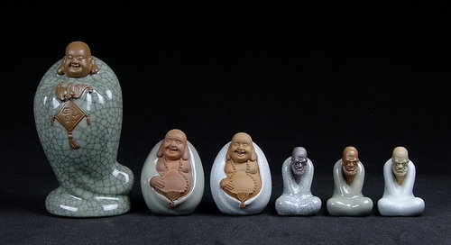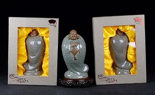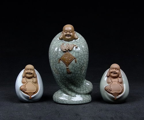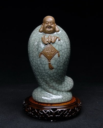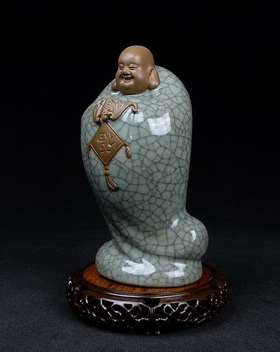 * 哥窯青瓷 鐵線開片釉 最新引進精品 7吋 彌勒佛(福在眼前)