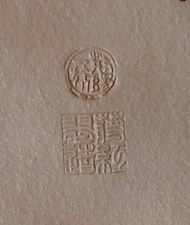 原礦清水泥 口徑 : 19.5 x 16.5 高 6 cm 双落款:圓章-荊陽一族 方章-蔣紅翠造